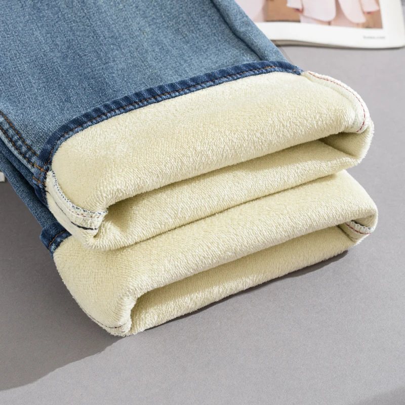 Y2k Pants Jeans for Woman Winter Fleece Lined 2025 New Thick Warmth Slim Wide Leg Straight Trousers Fashion casual